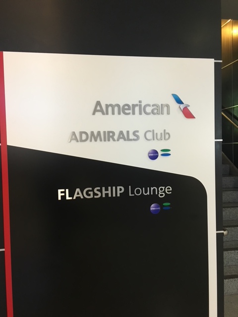 さて、実はこのフロアーには、もうひとつのラウンジがあります。アメリカン航空のアドミラルズクラブです。2つのラウンジは、同じフロアーですが、つながっていないので、一度フラッグシップラウンジを出ます。そして、アドミラルズクラブの前でもう一度AAの係にチケット見せて入室します。