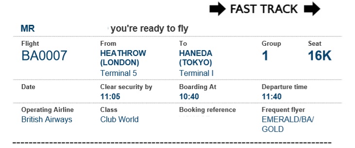 【2018年5月搭乗】BA7 Club World LHR 11:40 – HND 07:10