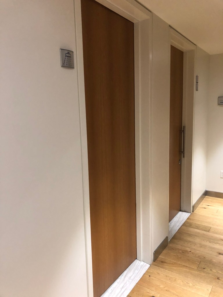 そして、シャワーを利用しに、さらに奥に。シャワー室は、ラウンジ奥のトイレのそばにあります。
