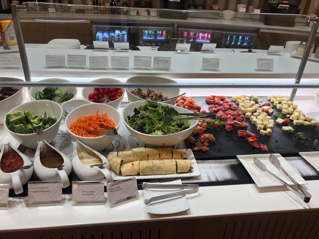 ラウンジ奥に、ビュッフェがあります。品揃えは、まぁまぁ。ちょっと種類がすくないかもです。