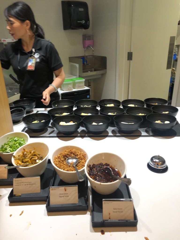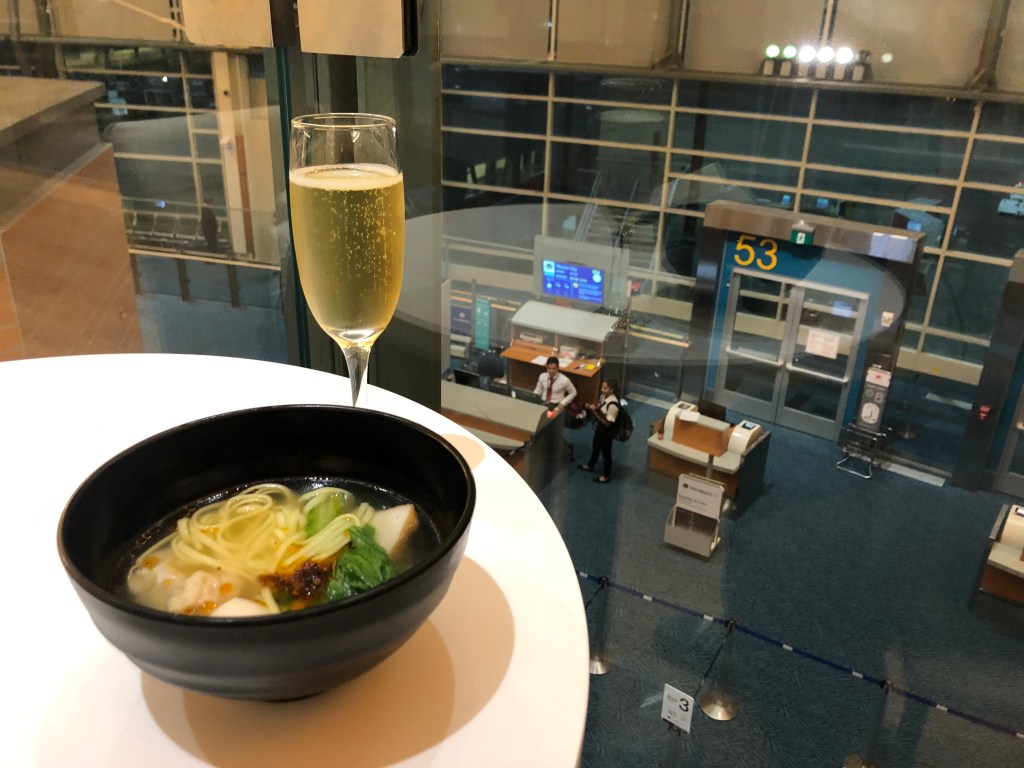 オープン当初は、麺の種類があったようですが、この時は、フィッシュボールヌードル1種だけでした。味は、まぁまぁ。キャセイのラウンジ麺のレベルの高さを実感しました。