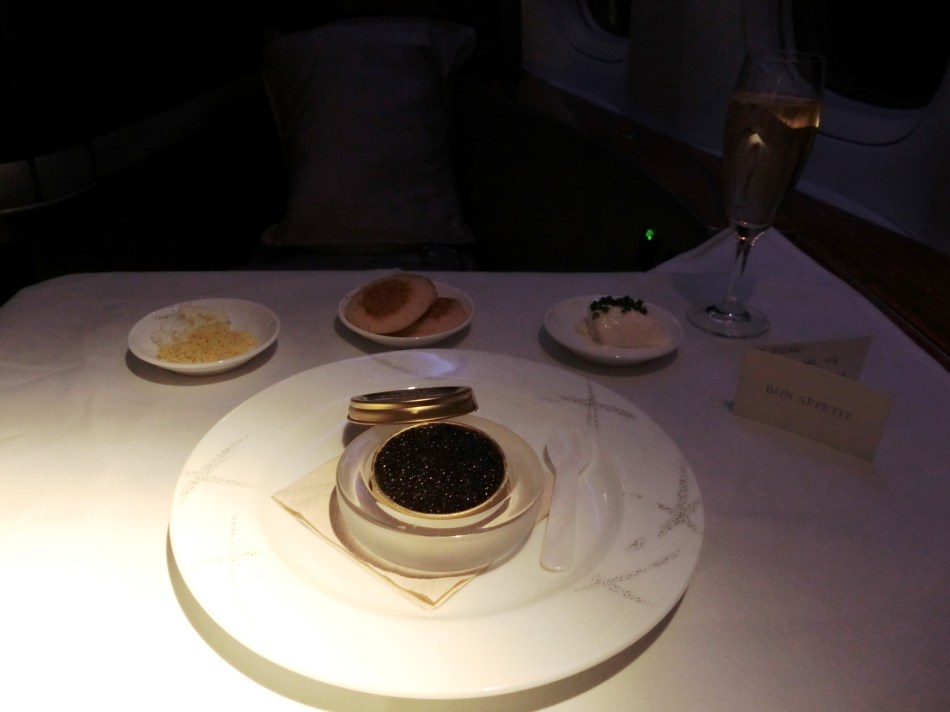 ファーストクラスのキャビアは航空会社によってメーカーが異なりますね。