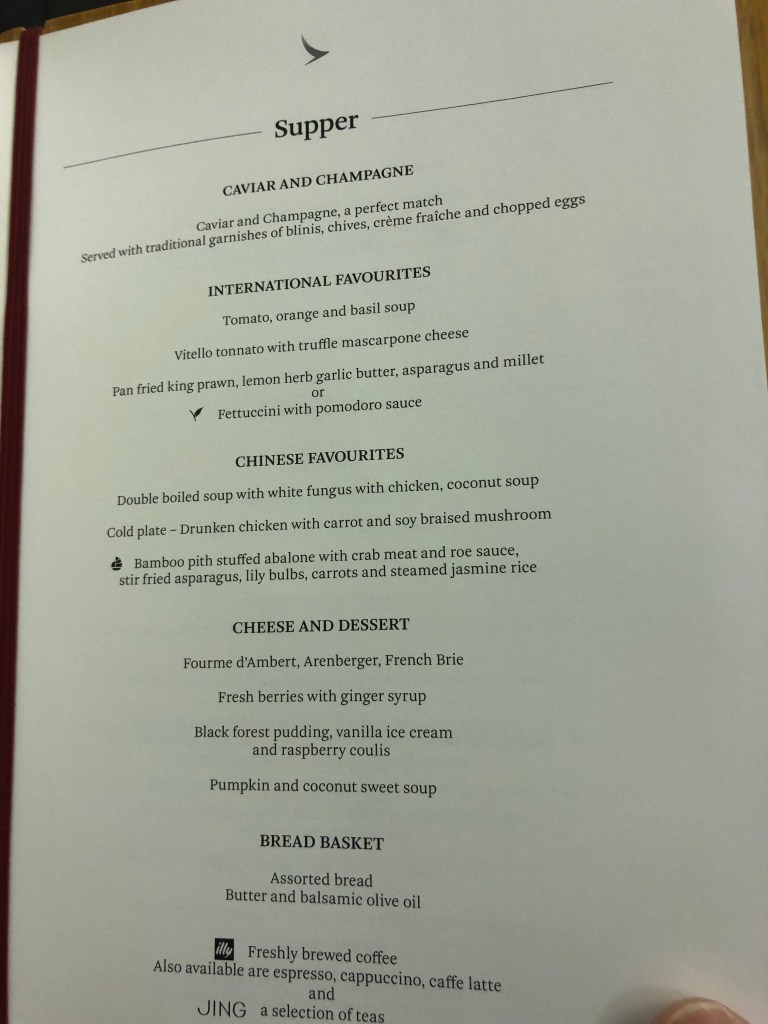 Krugとキャビア提供がある点はグッドですが、正直そのほかの食事は、まあまあでした。これだったらキャセイならビジネスでいいかも、と。